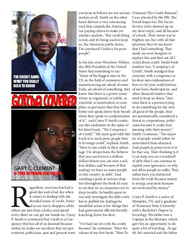 Corey p smith, c p smith, corey smith, conspiracy conspiracy of credit The conspiracy of credit is a must read.It contains the most raw and comprehesive information you will ever find on credit. ... Return Document